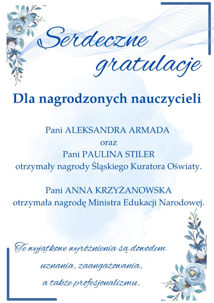 🏅 Nagrody Kuratora Oświaty otrzymały nasze wspaniałe nauczycielki mgr Aleksandra Armada oraz mgr Paulina Stiler,