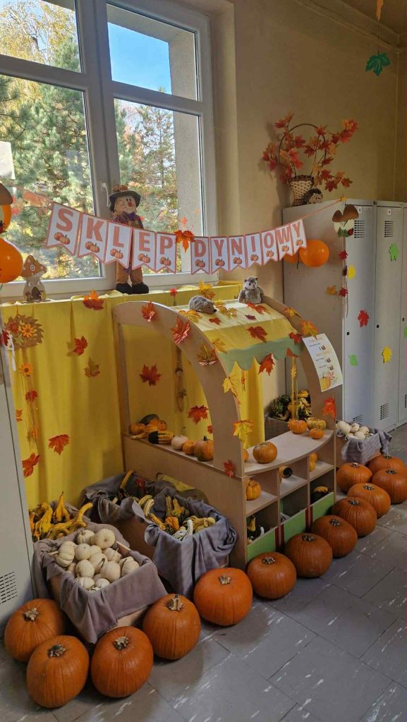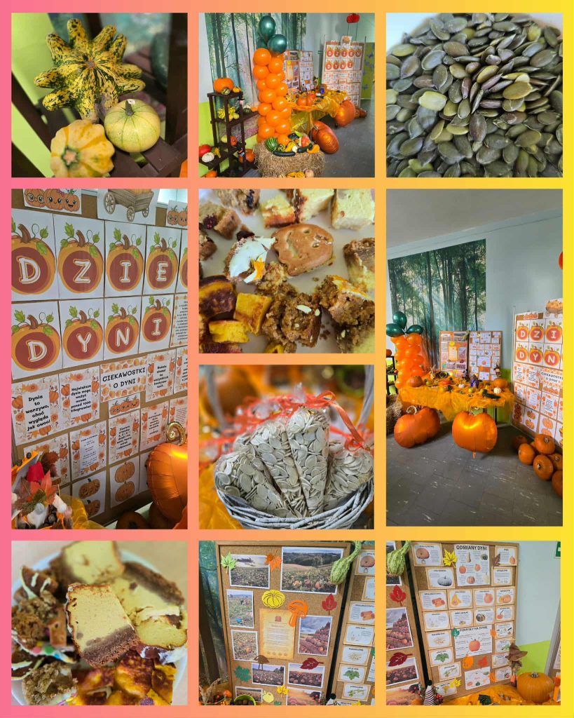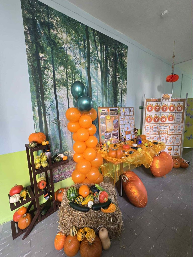 Tutaj dzieci mogły zobaczyć różne rodzaje dyni, porównać ich kształty i kolory oraz dowiedzieć się wielu ciekawych informacji o tej niezwykłej roślinie.