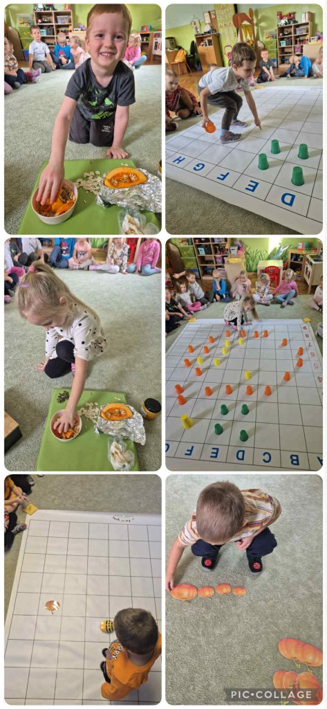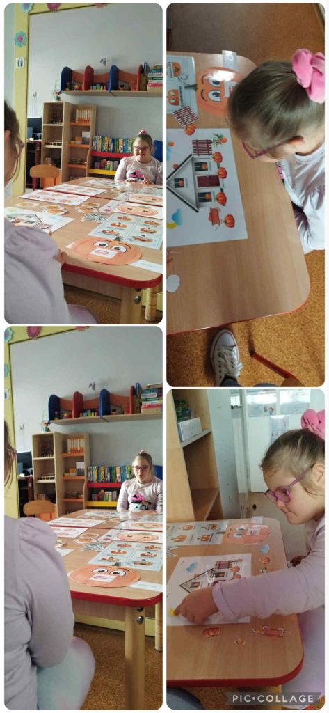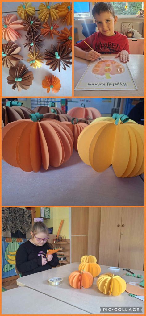 Nie zabrakło też dyniowych inspiracji podczas zajęć ze specjalistkami – logopedą i psychologiem, które przygotowały tematyczne gry, zabawy i ćwiczenia rozwijające mowę, emocje i współpracę.