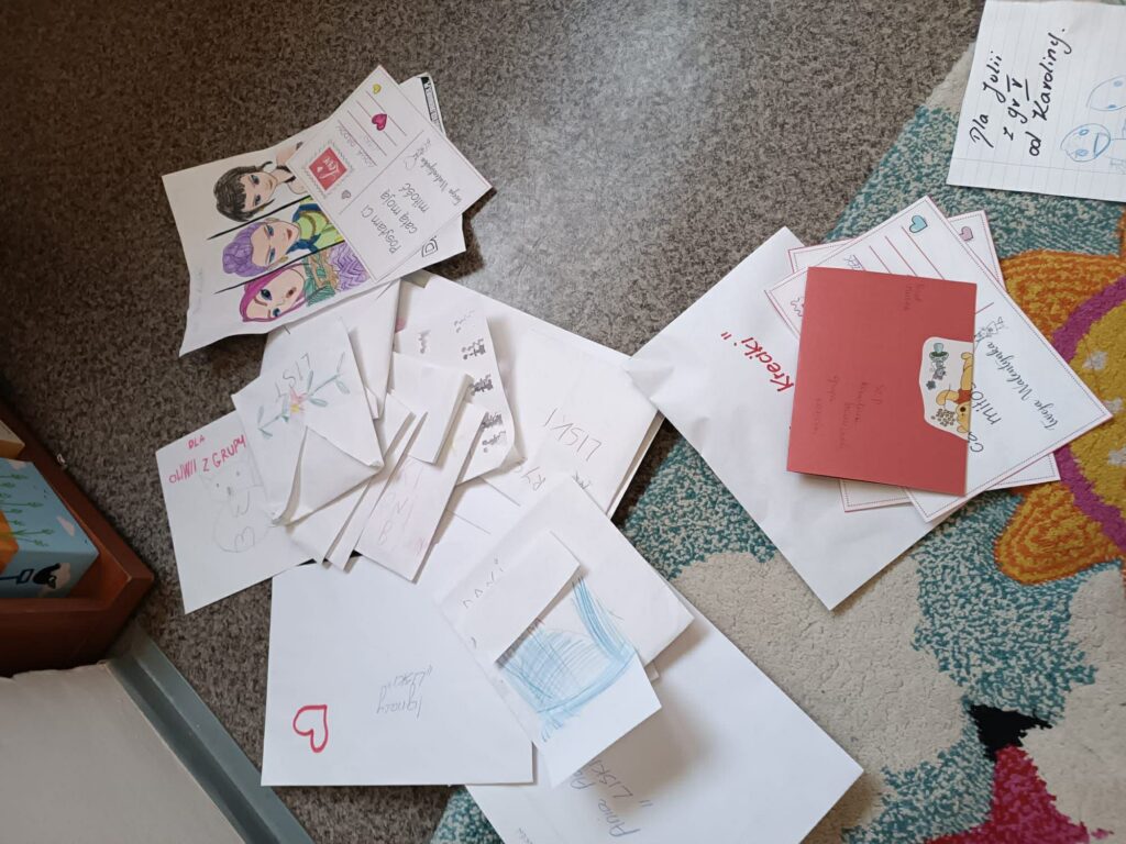 Był to czas pełen radości, życzliwości i pięknych gestów przyjaźni. Dzieci z ogromnym zaangażowaniem przygotowywały walentynkowe kartki dla swoich koleżanek, kolegów oraz pracowników przedszkola. Przez cały tydzień do naszej przedszkolnej skrzynki pocztowej trafiały kolorowe, własnoręcznie wykonane walentynki a każda z nich była wyjątkowym wyrazem sympatii i ciepłych uczuć. Zwieńczeniem tego pełnego emocji tygodnia było uroczyste rozdanie walentynek. W tym ważnym zadaniu specjalistkom pomagały dzieci, które zostały odznaczone specjalną serduszkową opaską i jako mali „listonosze walentynkowi” z dumą dostarczali przesyłki do adresatów. Dziękujemy wszystkim za zaangażowanie i wspólne świętowanie!