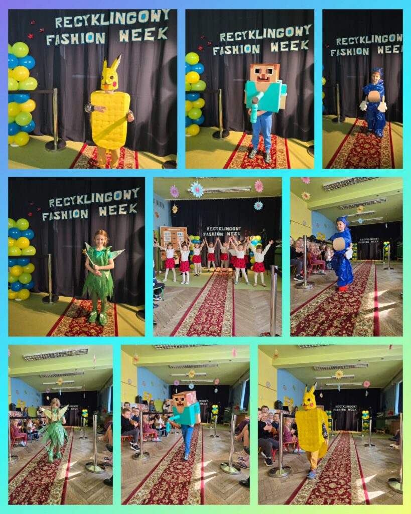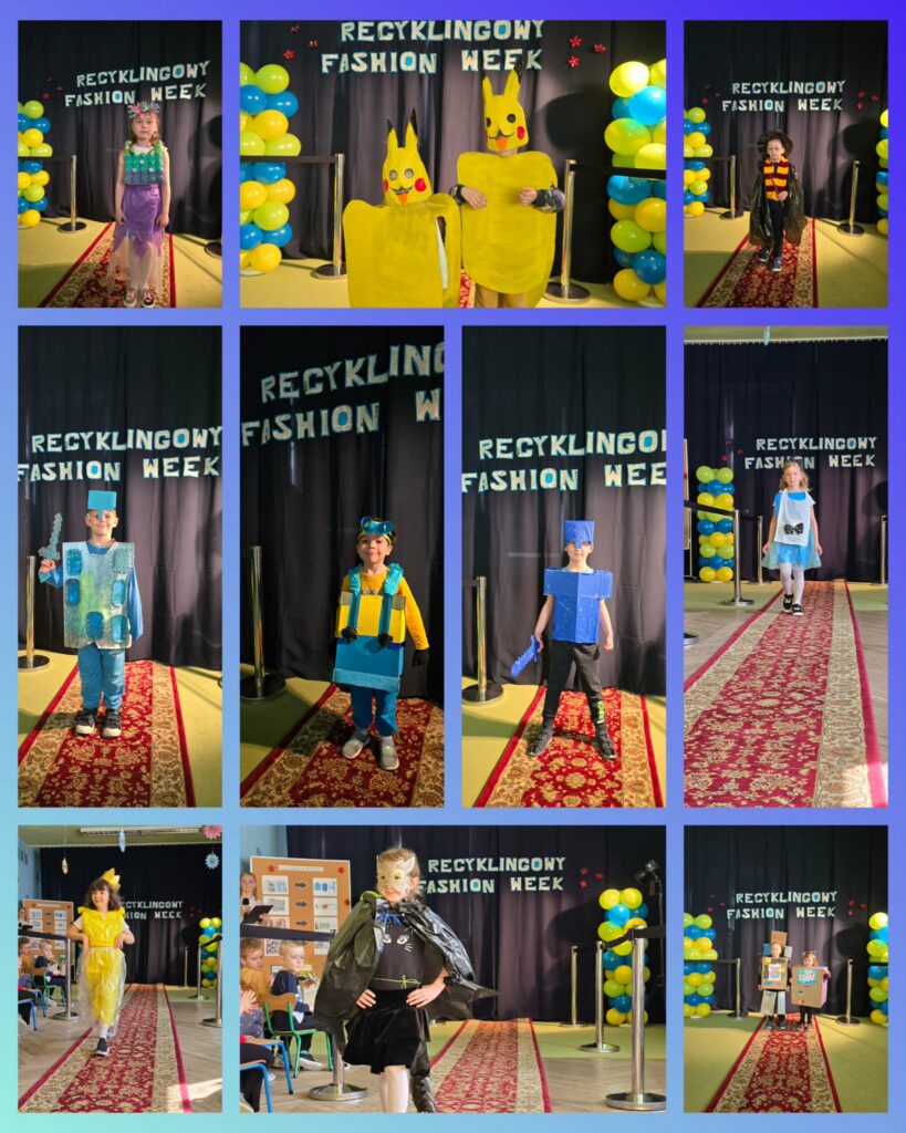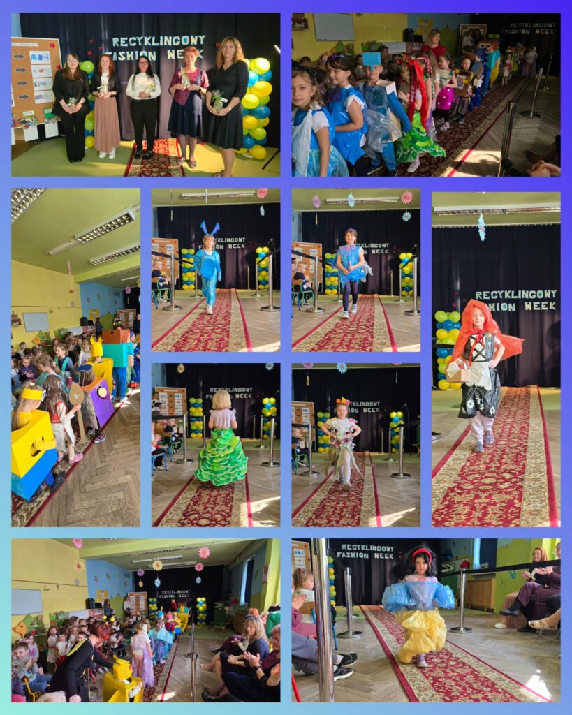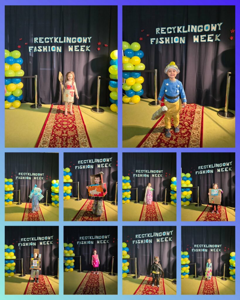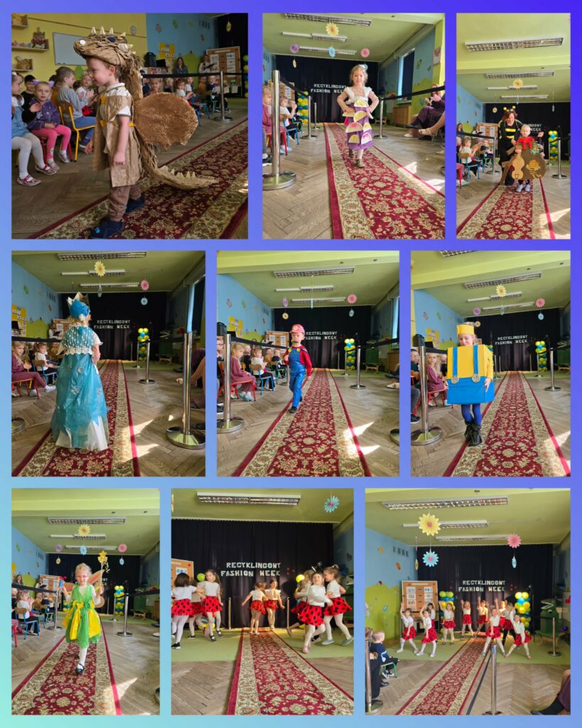 W wydarzeniu wzięło udział aż 39 dzieci z całego przedszkola, które zaprezentowały niezwykle kreatywne stroje inspirowane postaciami z bajek. Każda stylizacja była wyjątkowa i wykonana z różnorodnych materiałów przeznaczonych do ponownego wykorzystania – od papieru i kartonu, po tworzywa sztuczne i elementy codziennego użytku. Dzieci wykazały się ogromną wyobraźnią oraz zaangażowaniem, pokazując, jak w twórczy sposób można dbać o środowisko.