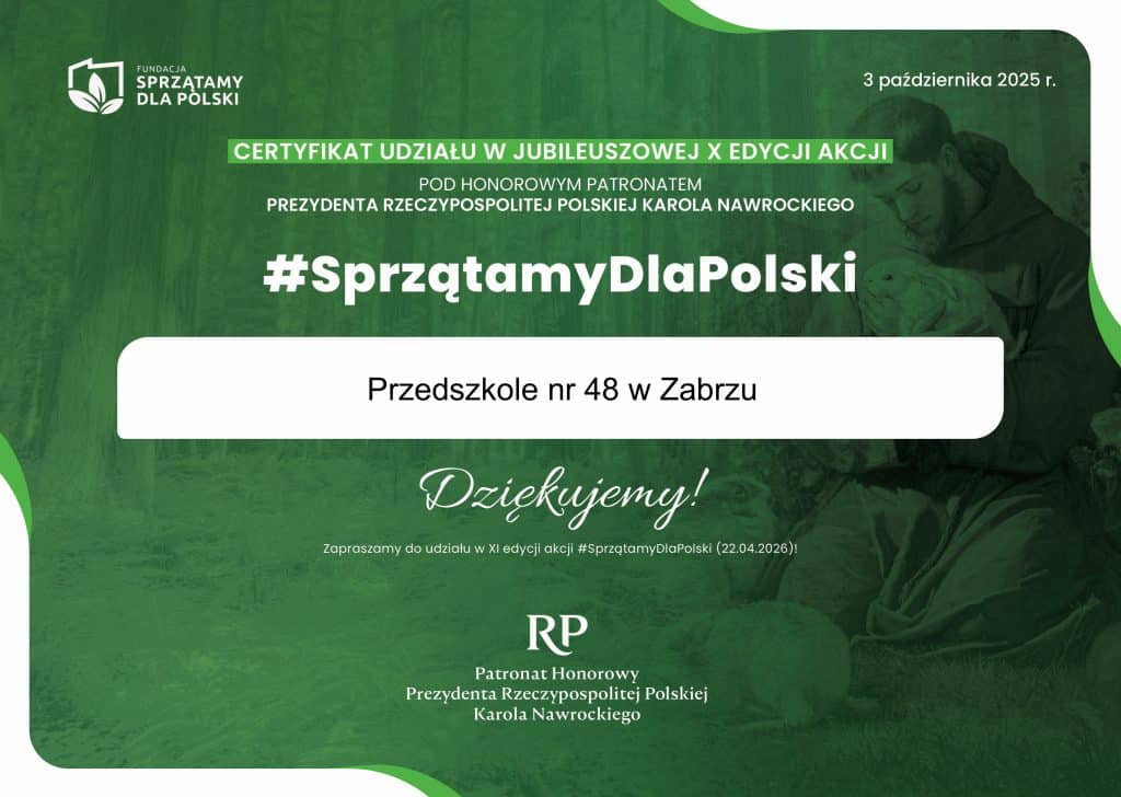 CERTYFIKAT UCZESTNICTWA W VIII EDYCJI AKCJI #SPRZĄTAMY DLA POLSKI