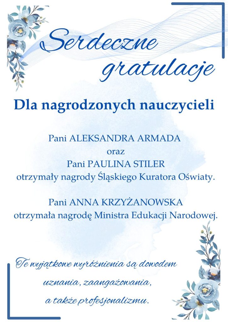 GRATULACJE DLA NAGRODZONYCH NAUCZYCIELI