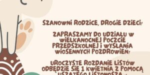 Szanowni rodzice, drogie dzieci zapraszamy do udziału w wielkanocnej poczcie przedszkolnej i wysyłania wiosennych pozdrowień. Uroczyste rozdanie listów odbędzie się 1 kwietnia z pomocą uszatego listonosza.