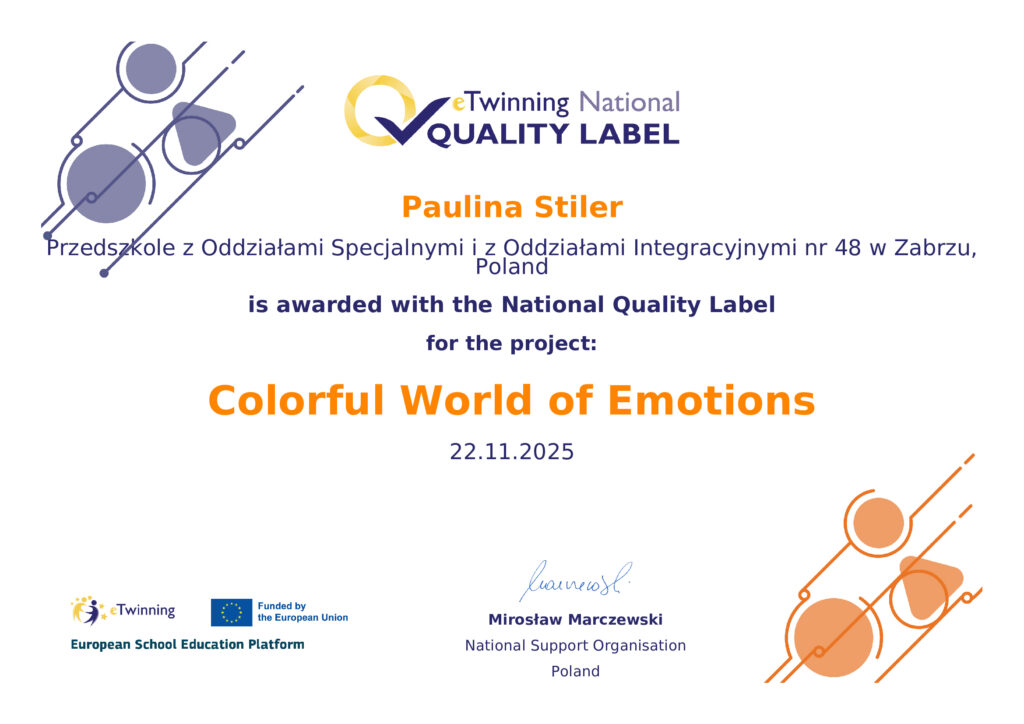 To wyjątkowe wyróżnienie jest dowodem na Wasze zaangażowanie, innowacyjne podejście do edukacji, współpracę międzynarodową oraz otwartość na nowoczesne technologie i rozwój. Dzięki Waszej pasji i determinacji dzieci mają szansę odkrywać świat w inspirujący, kreatywny sposób — już od najmłodszych lat!